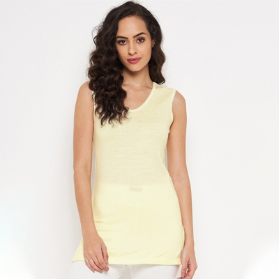 Women Off White Solid Cotton Thermal Tops