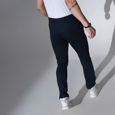"A pair of navy blue solid knitted mid-rise track pants with striped detail, has an elasticated waistband with drawstring fastening, two insert pockets