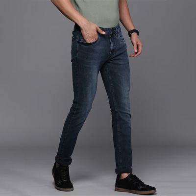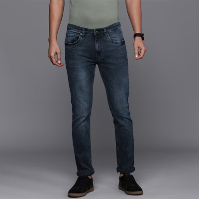 Medium shade, heavy fade navy blue jeans Slim fit, low-rise Clean look Stretchable 5 pocket Length: regular Size & Fit Fit: Slim Fit Stretchable The model (height 6') is wearing a size 32 Material & Care 99% Cotton 1% Elastane Machine-wash