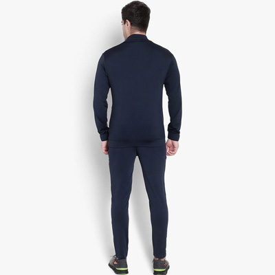"solid Slim-Fit tracksuit consists of a jacket and track pants solid slim-fit sporty jacket, has a mock collar, long sleeves, a zip closure, 2 zipped pockets, and an attached polyester lining solid slim-fit mid-rise track pants, has an elasticated waistband with a drawstring closure, with 2 pockets Size & Fit Slim-Fit The model (height 6') is wearing a size M Material & Care Polyester Hand Wash"
