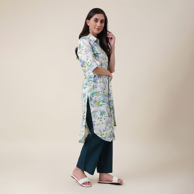 "Fabric :Cotton Weave Type :Machine Weave Pattern :Printed Neck :Shirt Collar Sleeve Length :Long Sleeves Occasion :Casual Main Trend :Floral Print Wash Care :Machine Wash"