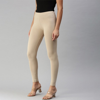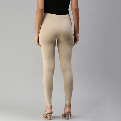 "Beige ankle-length leggings, has an elasticated waistband and slip-on closure Size & Fit The model (height 5'8"") is wearing size S Material & Care 95% Cotton 5% Elastane Machine wash"