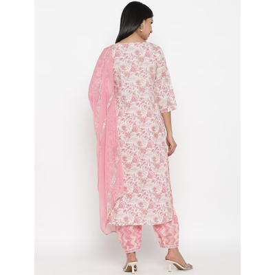 "Off white embroidered Kurti with Salwar with dupatta Kurti design: Floral embroidered Straight shape Regular style Round neck, three-quarter regular sleeves Calf length with straight hem Pure cotton machine weave fabric Salwar design: Printed Salwar Drawstring closure Size & Fit The model (height 5'8) is wearing a size S Material & Care GENTLE WASH"