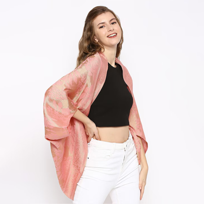Printed open front regular shrug ,has three-quarter sleeves, embellished detail, high-low hem Size & Fit The model (height 5'8) is wearing a size S Material & Care modal Dryclean; For More details of wash please check Wash care label Tagged inside the Garments