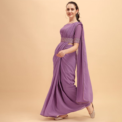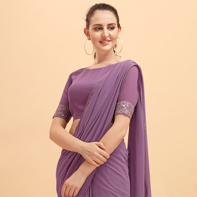 Women Purple Solid Saree with Embellished Belt Size & Fit Saree: 5.50 mtr, Blouse Piece: 1 mtr Material & Care Saree:Georgette,Blouse:Georgette,Dry Clean